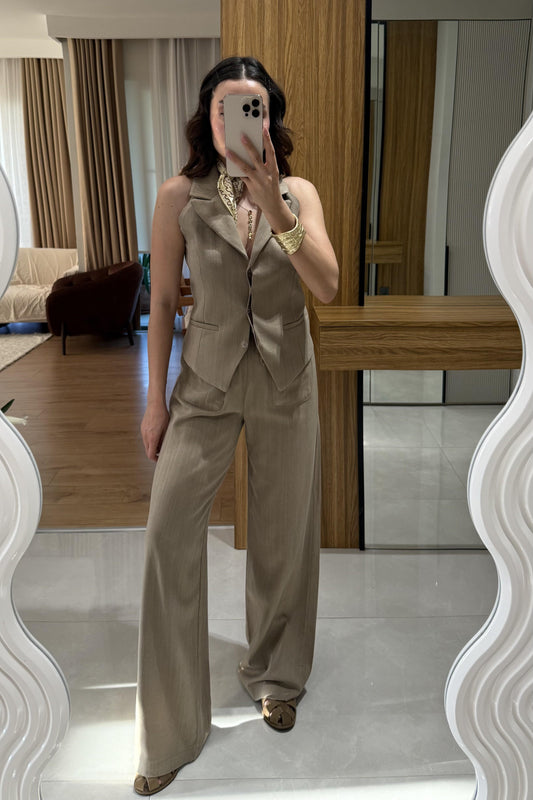 3 AL 2 ÖDERylah Kahve Yelekli Keten Premium Takım