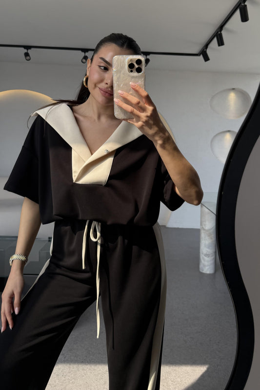 3 AL 2 ÖDESamantha Acı Kahve Gold Düğmeli Keten Takım