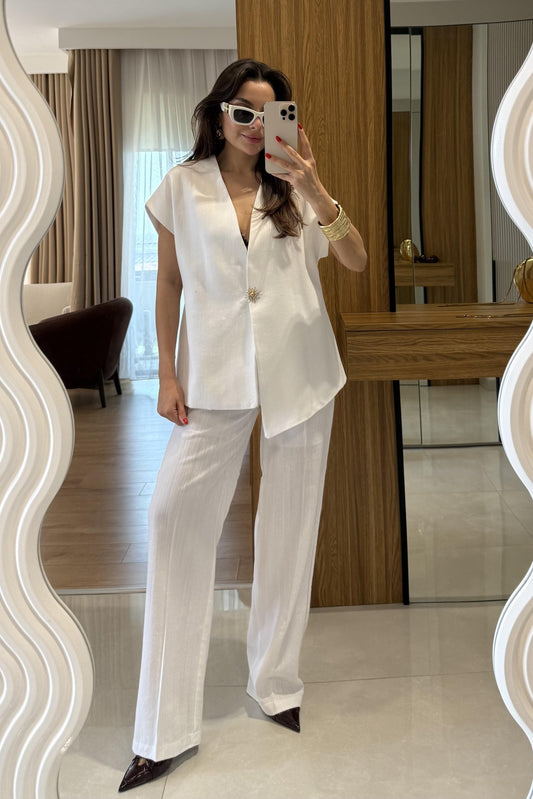 3 AL 2 ÖDERylah Beyaz Yelekli Keten Premium Takım