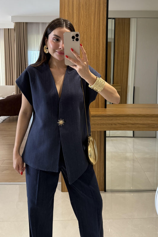 • Sunlight Lacivert Aksesuarlı Keten Takım