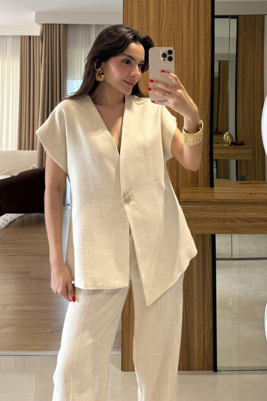 • Sunlight Çağla Aksesuarlı Keten Takım