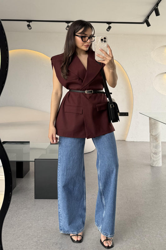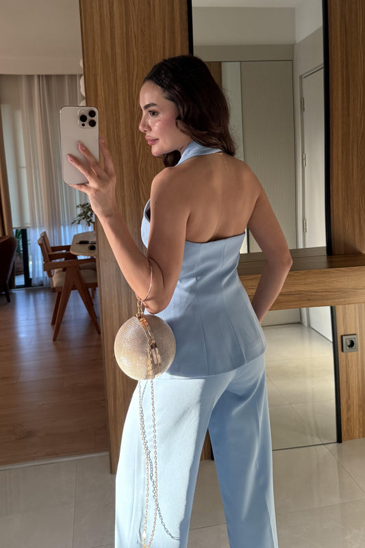 Sunlight Lacivert Aksesuarlı Keten Takım