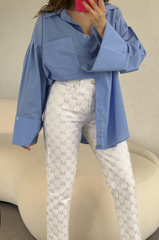 • Tulip Mavi Kolları Manşet Detaylı Gömlek