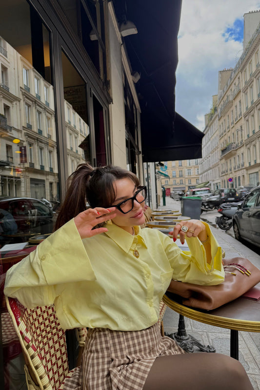 Tulip Sarı Kolları Manşet Detaylı Gömlek