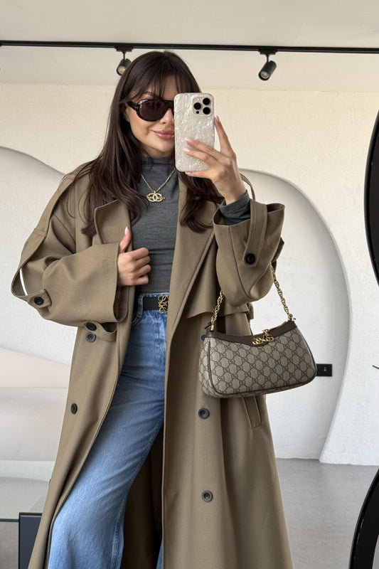• Brail Karamel Premium Bel Kuşaklı Trenç