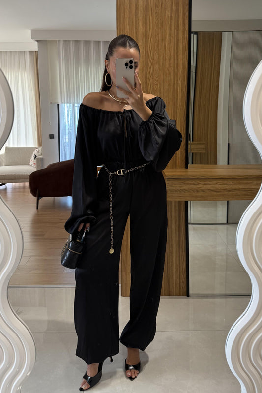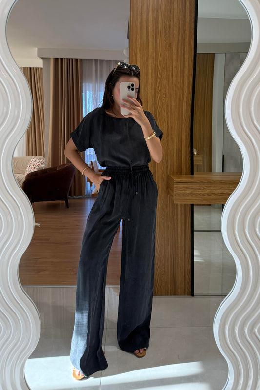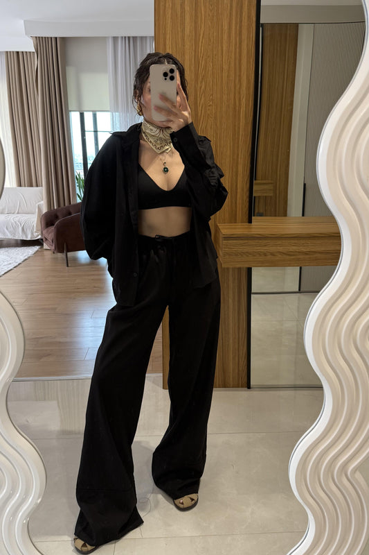 • Peru Siyah Ham Keten Gömlek Pantolon Takım