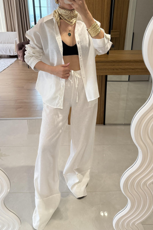• Peru Beyaz Ham Keten Gömlek Pantolon Takım