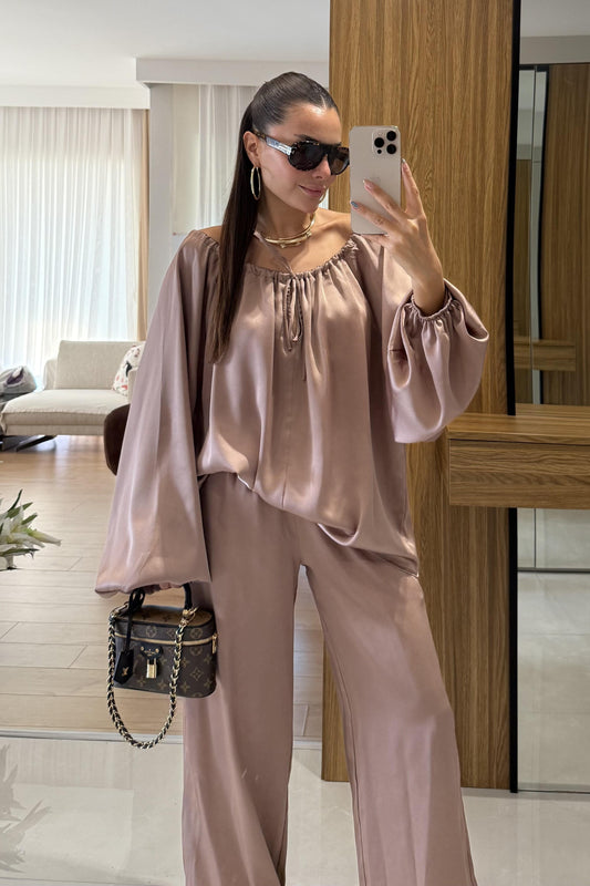 • Peru Pembe Ham Keten Gömlek Pantolon Takım