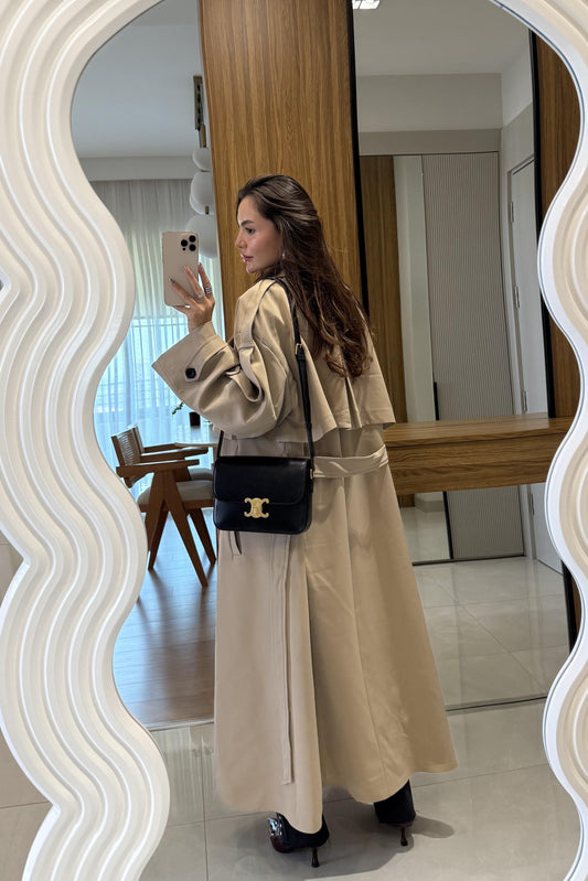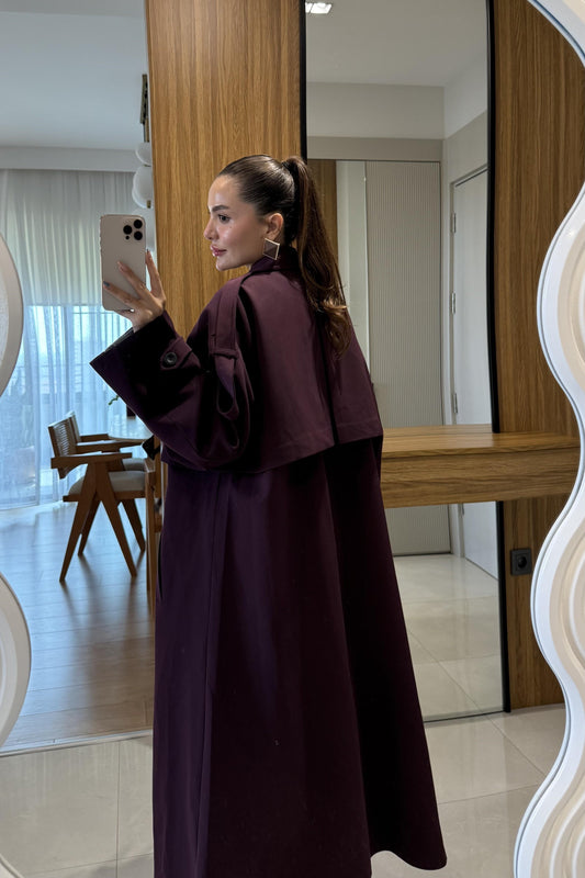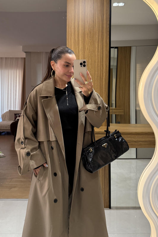 3 AL 2 ÖDENesha Kahve Çizgi Detaylı Trenç