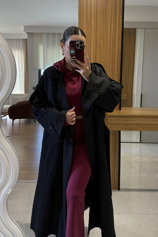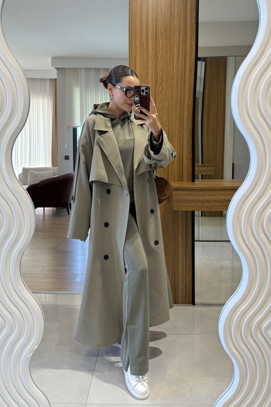 3 AL 2 ÖDENesha Antrasit Çizgi Detaylı Trenç