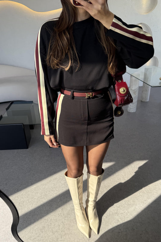 Palmas Siyah Yarım Kollu Şerit Detay Şortlu Premium Takım