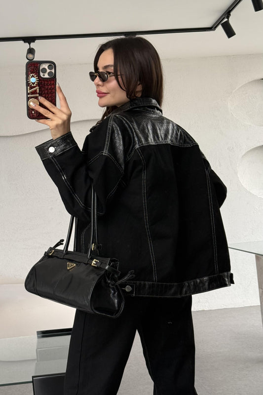 3 AL 2 ÖDEPanama Denim Deri Karışımlı Takım