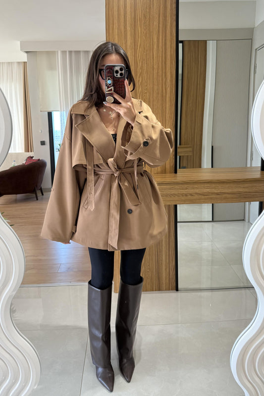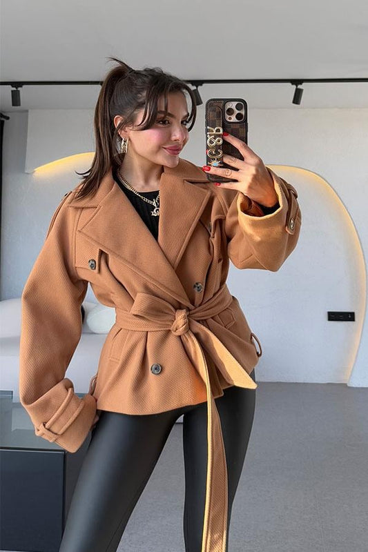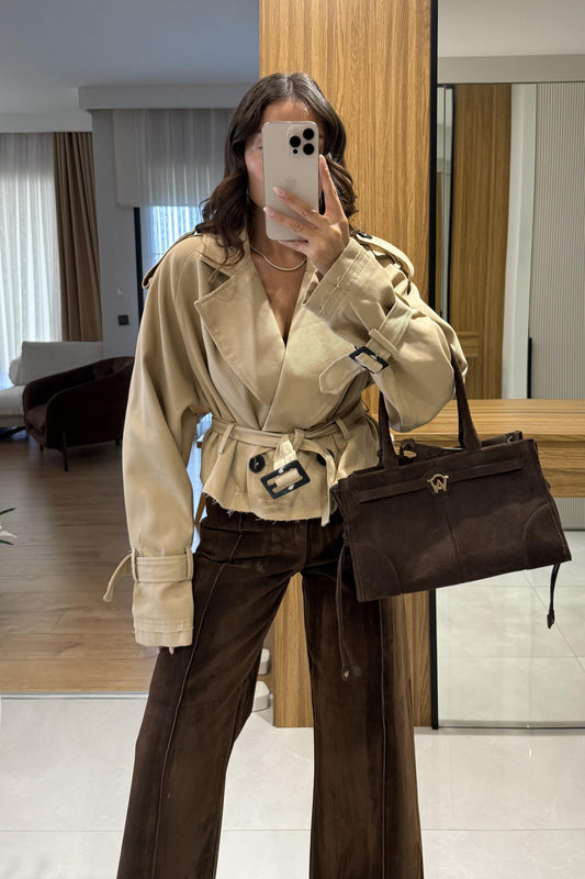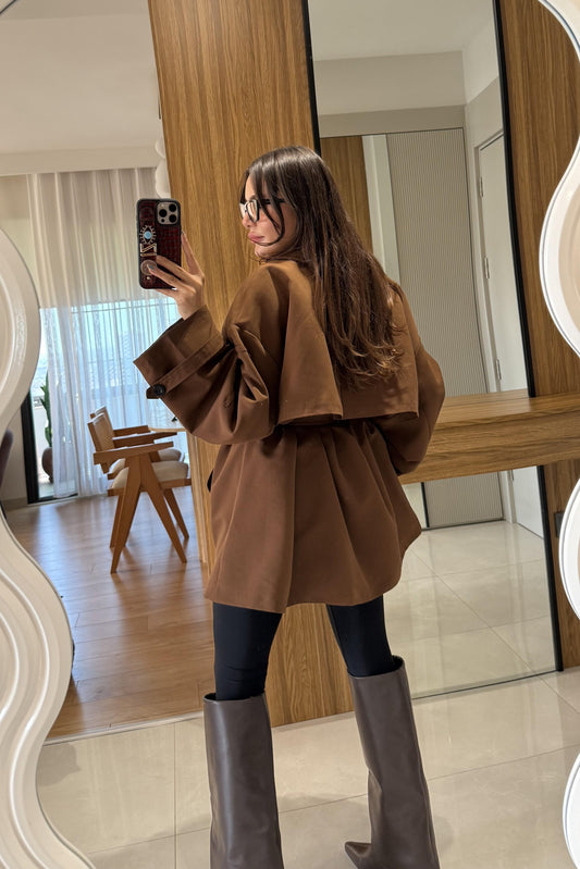 3 AL 2 ÖDENissou Acı Kahve Kısa Trençkot