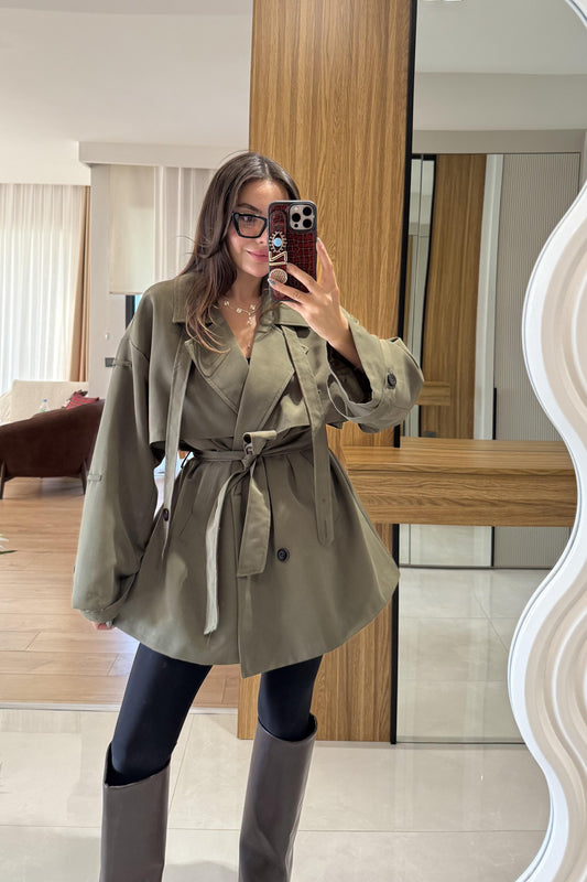 3 AL 2 ÖDEArnous Haki Kuşaklı Trenç
