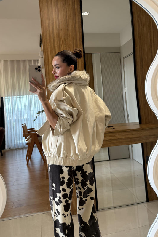 3 AL 2 ÖDECabral Krem Çıkarılabilir Kürklü Trenç