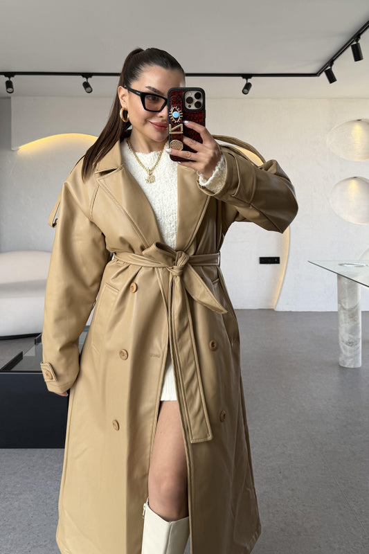 3 AL 2 ÖDEAlina Belden Bağlamalı Deri Trençkot