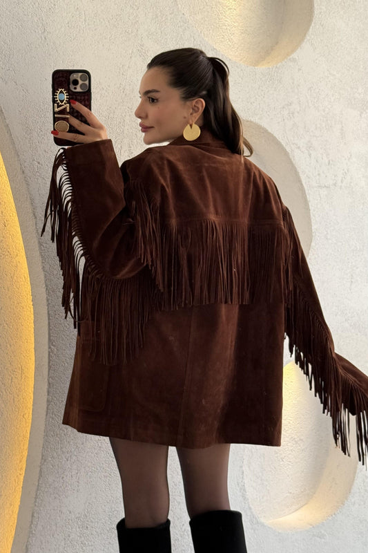 3 AL 2 ÖDEExert Acı Kahve Püsküllü Süet Ceket