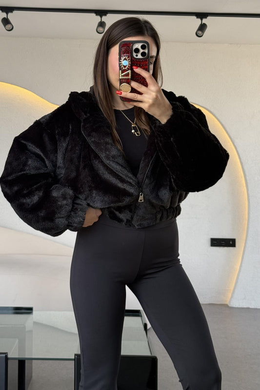 3 AL 2 ÖDEFalcon Siyah Kapüşonlu Peluş Ceket