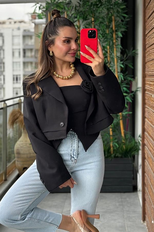 3 AL 2 ÖDECaitlyn Siyah Crop Ceket