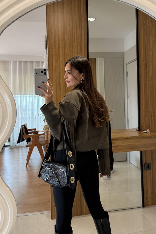 3 AL 2 ÖDECalixa Haki Püsküllü Süet Ceket