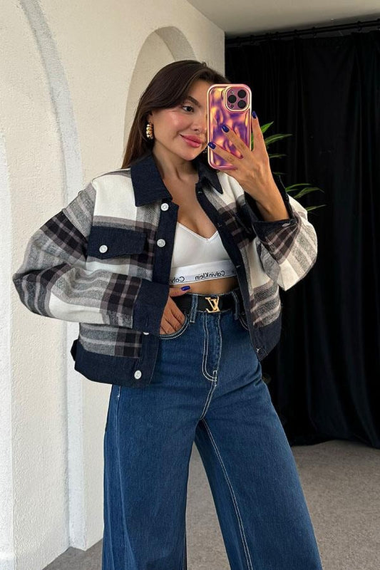 3 AL 2 ÖDECafea Ekose Lacivert Garnili Ceket