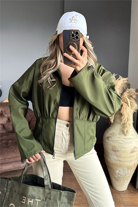 3 AL 2 ÖDEBelden oturtmalı haki yeşil yağmurluk