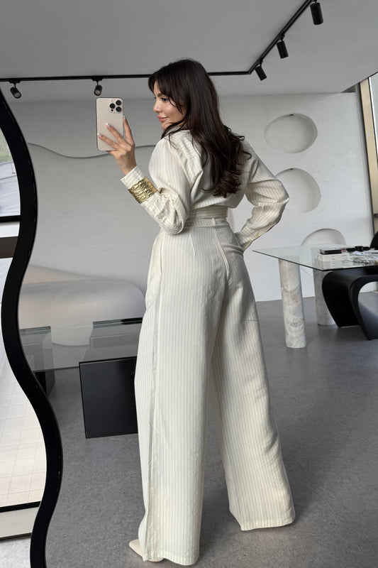 3 AL 2 ÖDEJulie Ekru Şeritli Tensel Takım