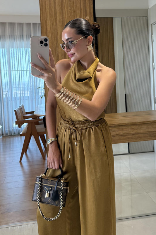 3 AL 2 ÖDEJullie Hardal Saten Bluz Pantolon Takım
