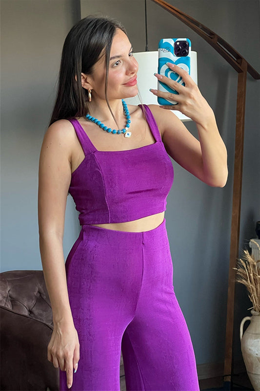 3 AL 2 ÖDEJully parlak dokulu mor ikili takım