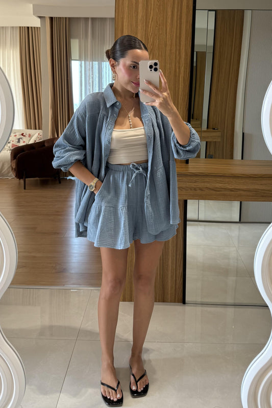 3 AL 2 ÖDEKaelis Mavi Gömlekli Müslin Takım