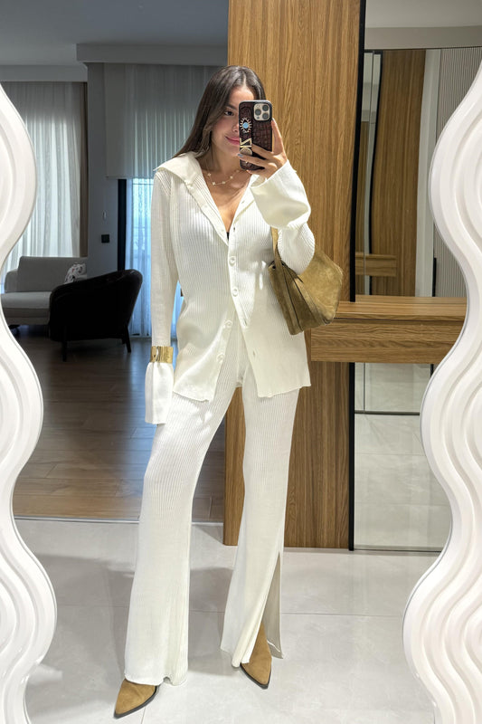 3 AL 2 ÖDEKais Beyaz Triko Düğmeli Takım