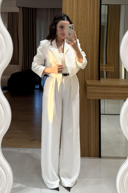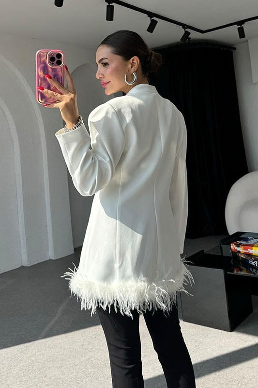 3 AL 2 ÖDEMonica Tüy Detaylı Beyaz Ceket