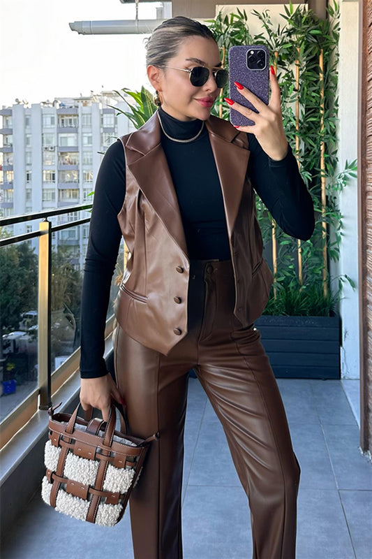 3 AL 2 ÖDEMıss Yakalı Kahve Deri Yelek