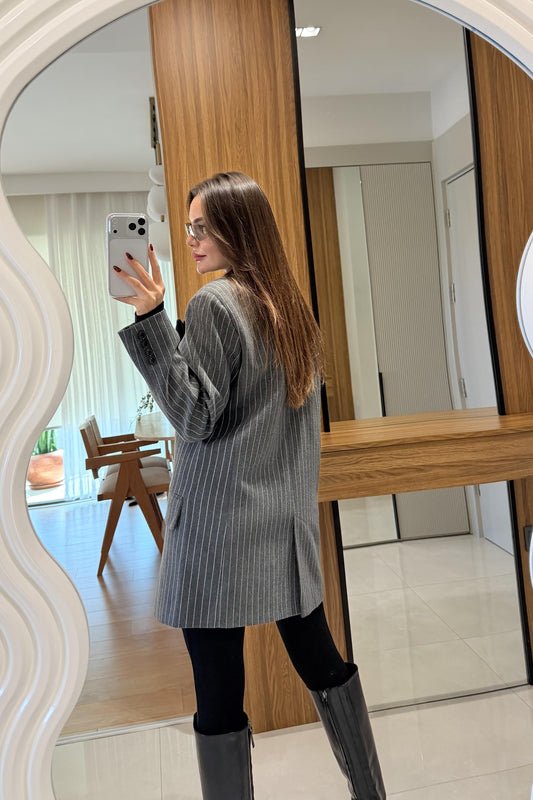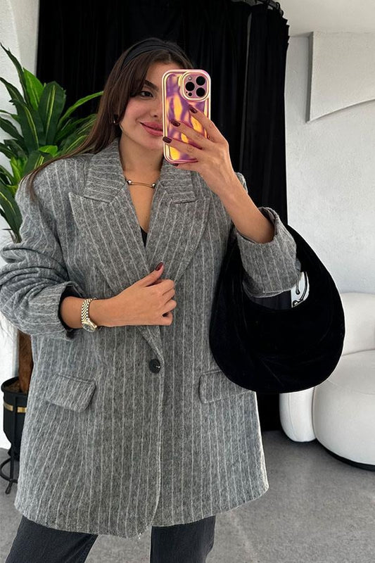 3 AL 2 ÖDEMotloch Çizgili Gri Kaşe Ceket