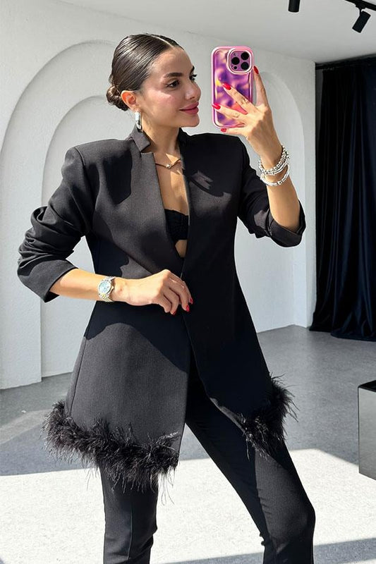 3 AL 2 ÖDEMonica Tüy Detaylı Siyah Ceket