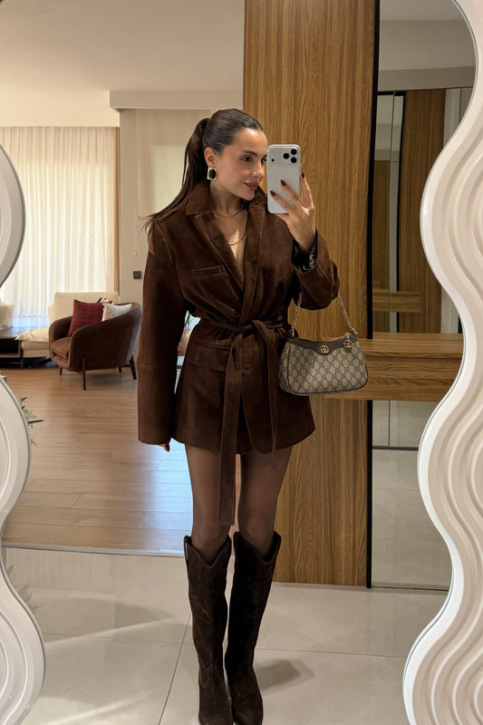 3 AL 2 ÖDEMorrison Acı Kahve Süet Kuşaklı Blazer Ceket