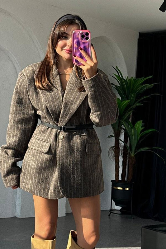 3 AL 2 ÖDEMotloch Çizgili Kahve Kaşe Ceket