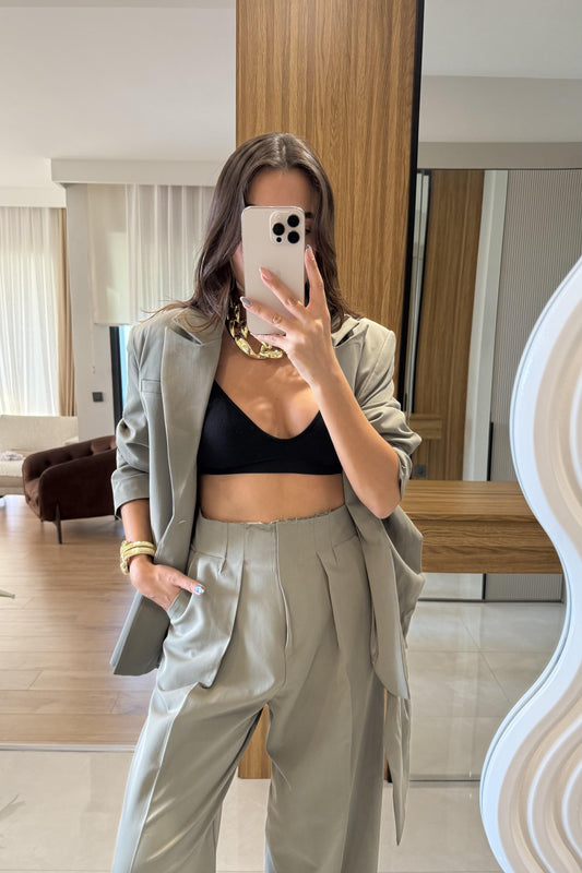 3 AL 2 ÖDEMinella Haki Yandan Bağlamalı Ceket