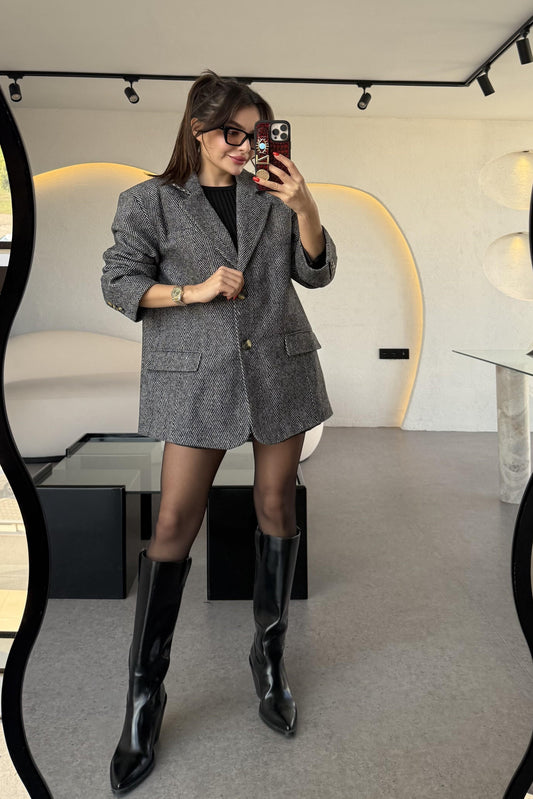 3 AL 2 ÖDETimber Siyah-Beyaz Dokulu Daddy Ceket