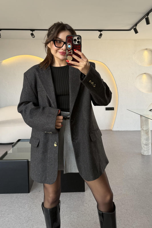 3 AL 2 ÖDETimber Gri Dokulu Daddy Ceket