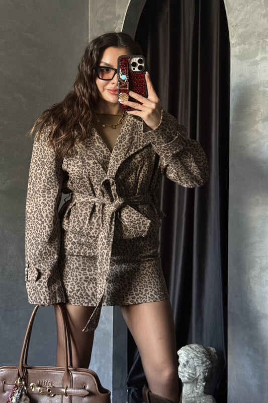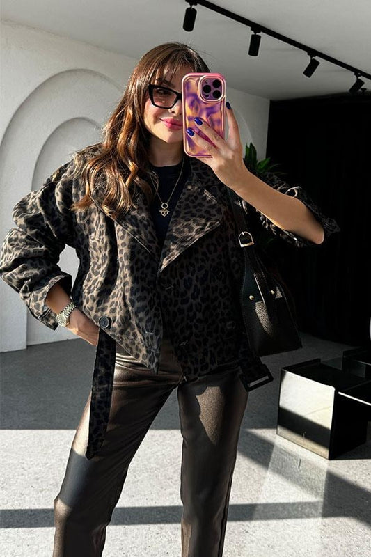 3 AL 2 ÖDEUganda Kahve Leopar Kemerli Ceket