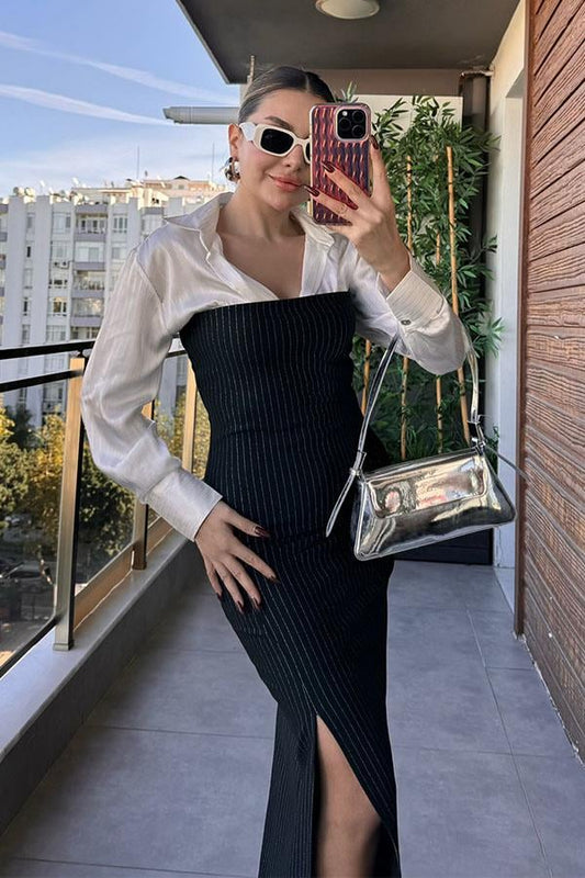 3 AL 2 ÖDEJepsen Çizgili Straplez Elbise