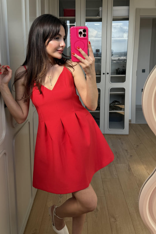 3 AL 2 ÖDEHolly Kırmızı Belden Oturtmalı Elbise