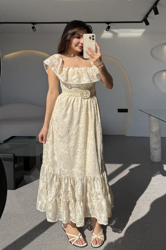 3 AL 2 ÖDEHolmes Nakış İşlemeli Madonna Yaka Elbise
