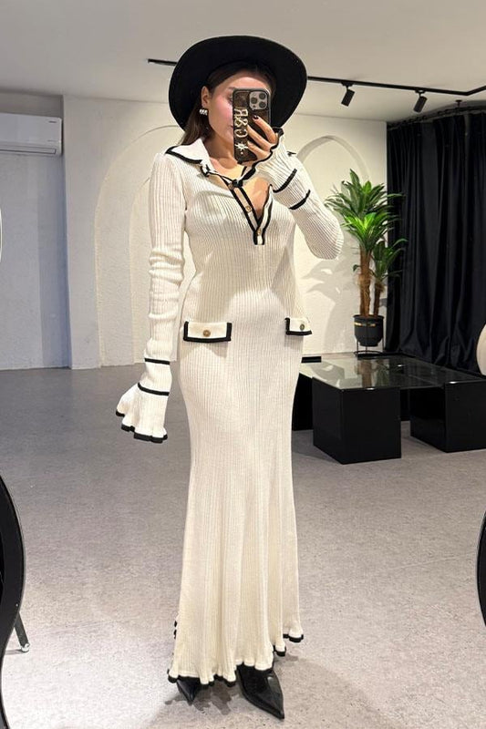 3 AL 2 ÖDEHowell Beyaz İspanyol Kol Triko Elbise