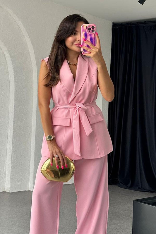 3 AL 2 ÖDEMilla Premium Kuşaklı Yelek Takım-Pembe