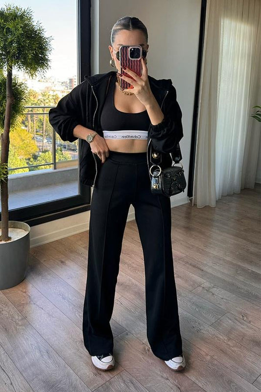 3 AL 2 ÖDEMina Modal Kumaş İkili Eşofman Takım - Siyah