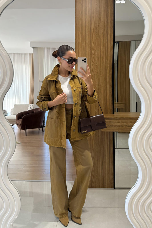 3 AL 2 ÖDEMinaj Hardal Yıkama Denim Takım