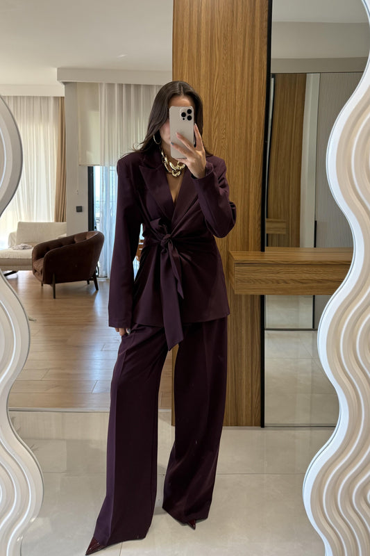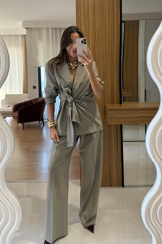 Mintara Vizon Kuşaklı Yelek Pantolon Keten Takım