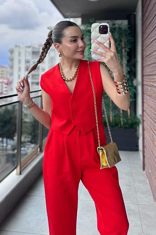 3 AL 2 ÖDEMaso Pantolon Yelek Takım - Kırmızı